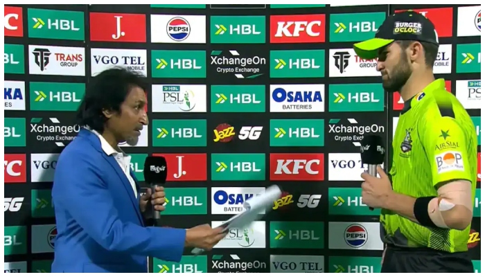 ایچ بی ایل پی ایس ایل 11 کے چھٹے میچ میں کراچی کنگز کی اننگز میں گیند کی حالت میں تبدیلی پر لاہور قلندرز کو 5 رنز کی پنالٹی کا سامنا کرنا پڑا۔ میچ کے بعد گفتگو کرتے ہوئے لاہور قلندرز کے کپتان شاہین آفریدی نے اس معاملے پر بات کی اور رمیز راجہ کے سوال کا جواب دیا۔ رمیز راجہ نے شاہین آفریدی سے سوال کیا کہ میچ کے آخر میں آپ سے گیند لے لی گئی کیونکہ اس کے ساتھ چھیڑ چھا جواب میں شاہین آفریدی نے کہا 'مجھے کچھ معلوم نہیں، کیمروں میں دیکھیں گے، پھر بات...