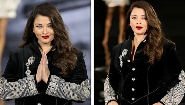 بالی ووڈ کی اسٹائل آئیکون اور سابق مس ورلڈ ایشوریا رائے بچن نے پیرس فیشن ویک میں ہیرے جڑی شیروانی زیب تن کر کے جلوے بکھیر دیے۔
