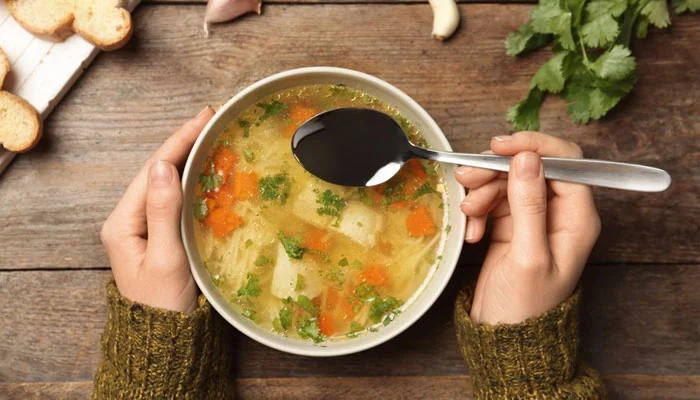 سوپ میں ہلکے پروٹین، وٹامن سے بھرپور سبزیاں اور کچھ کیلوریز ہوتی ہیں اور یہ نظام ہضم پر زیادہ بوجھ ڈالے بغیر جسم کو صحت یاب ہونے میں مدد کرتا ہے۔