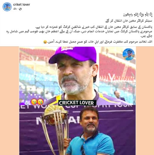 سب سے پہلے خبر دینے کی دوڑ میں سوشل میڈیا پر حیدرآباد کے سینئر کرکٹر معین خان راجپوت کے انتقال پر 1992 ورلڈکپ کی فاتح ٹیم کے ممبر معین خان کی تصویر لگادی۔